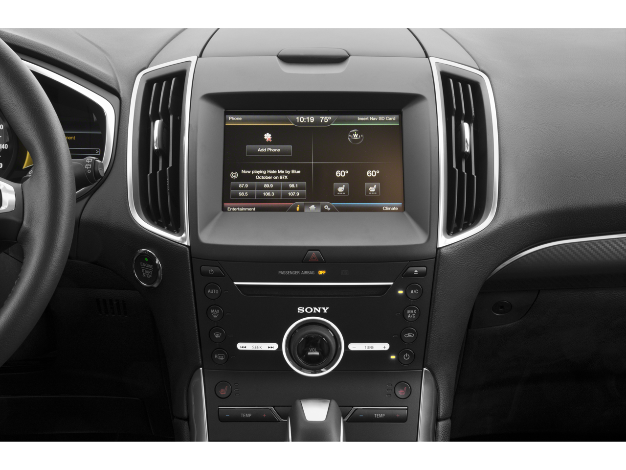 - Radio: AM/FM Stereo w/Single CD Player -inc: 12-speaker audio system from Sony and HD Radio