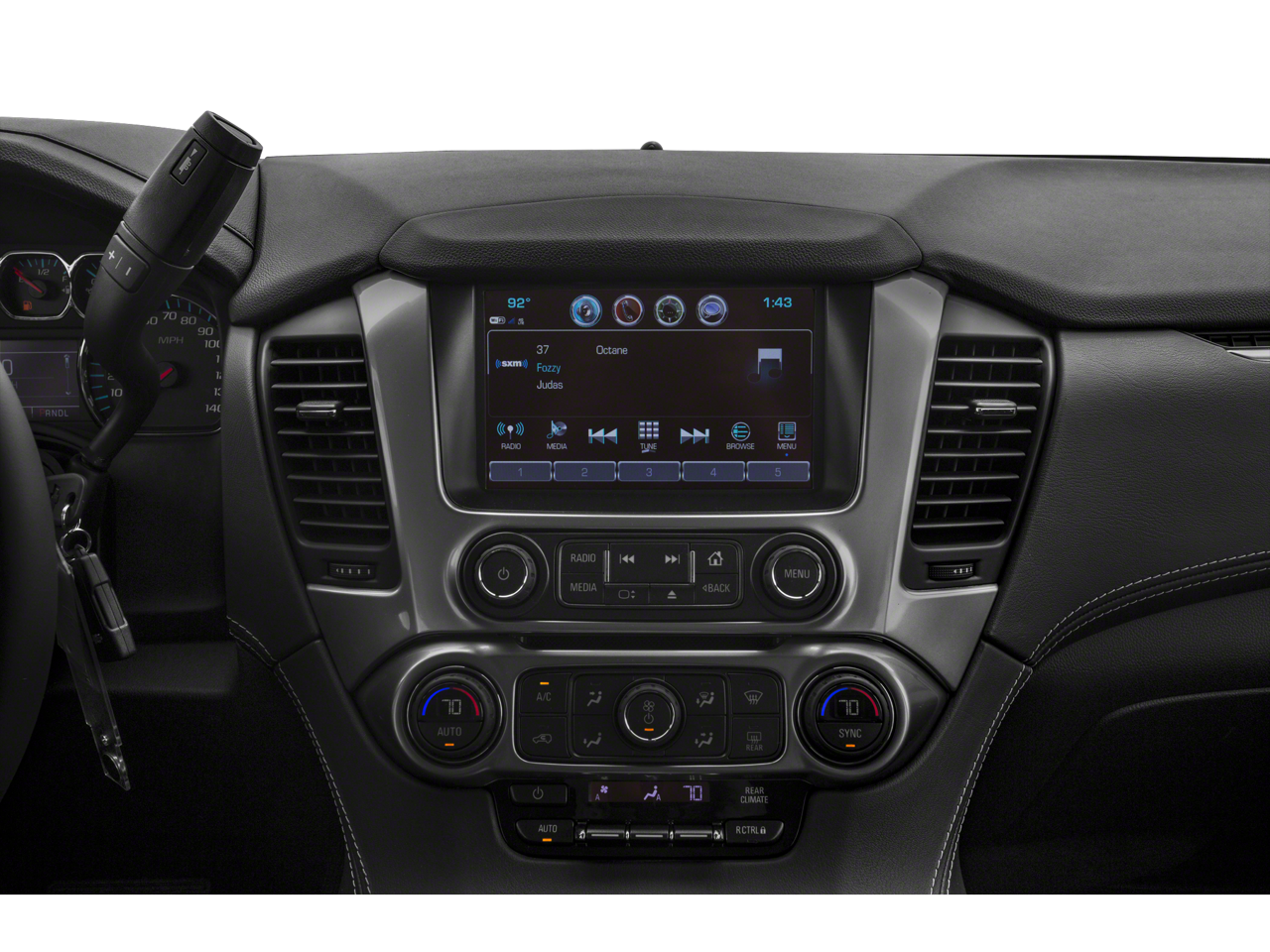 - AM/FM stereo with seek-and-scan and digital clock, includes Bluetooth® streaming audio for music and select phones; voice-activated technology for radio and phone; and Shop with the ability to browse, select and install apps to your vehicle. You can customize your content with audio, weather and more; featuring Apple CarPlay and Android Auto capability for compatible phone; 5 USB ports and 1 auxiliary jack