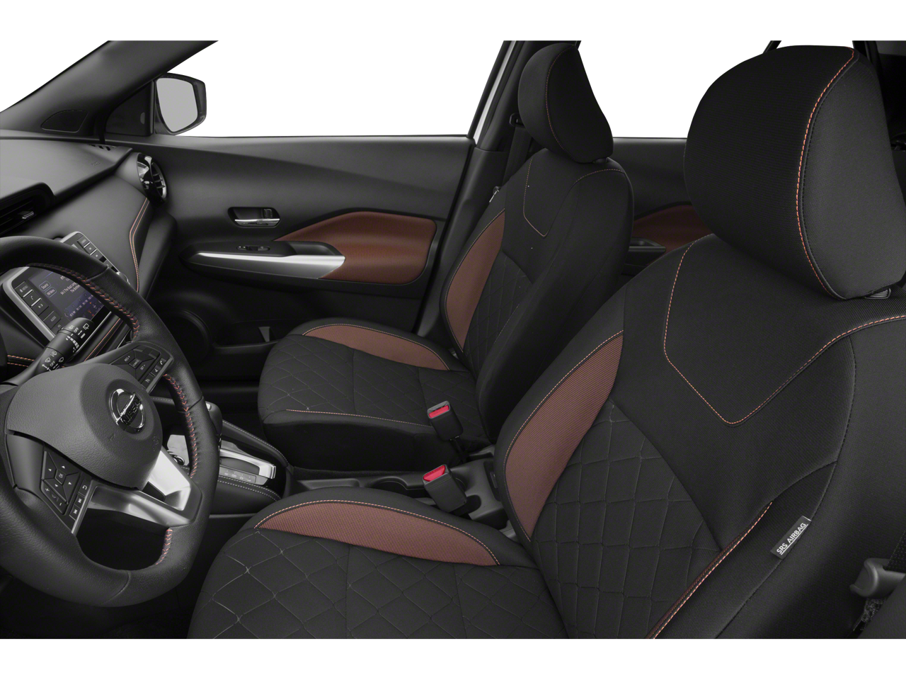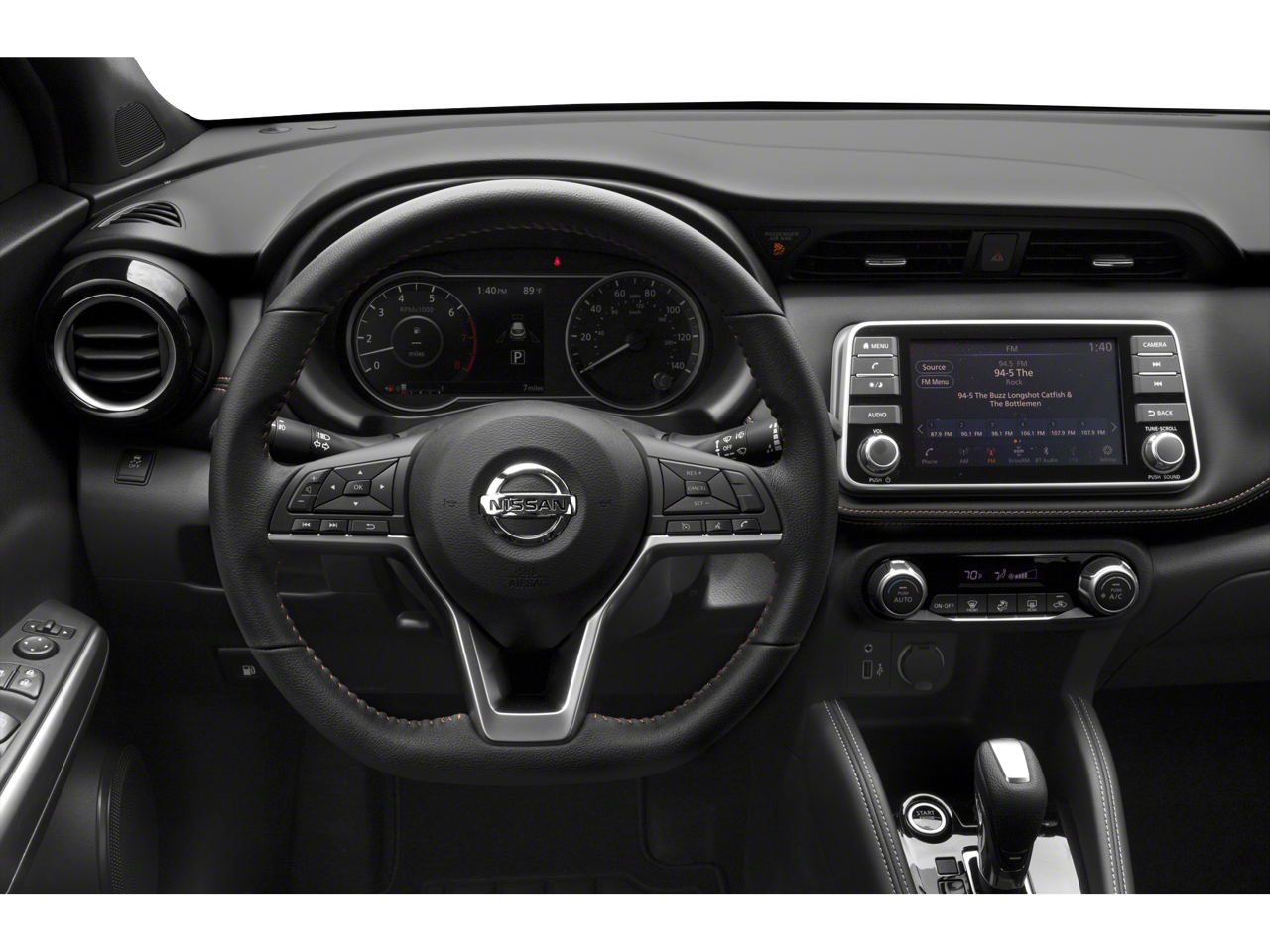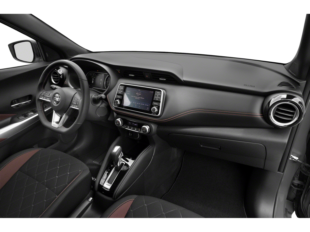 Inside, the Kicks SR's premium cabin is appointed with high-quality materials and thoughtful design touches, including a leather-wrapped steering wheel, NissanConnect infotainment system with Apple CarPlay and Android Auto, and an available Compass for effortless navigation.