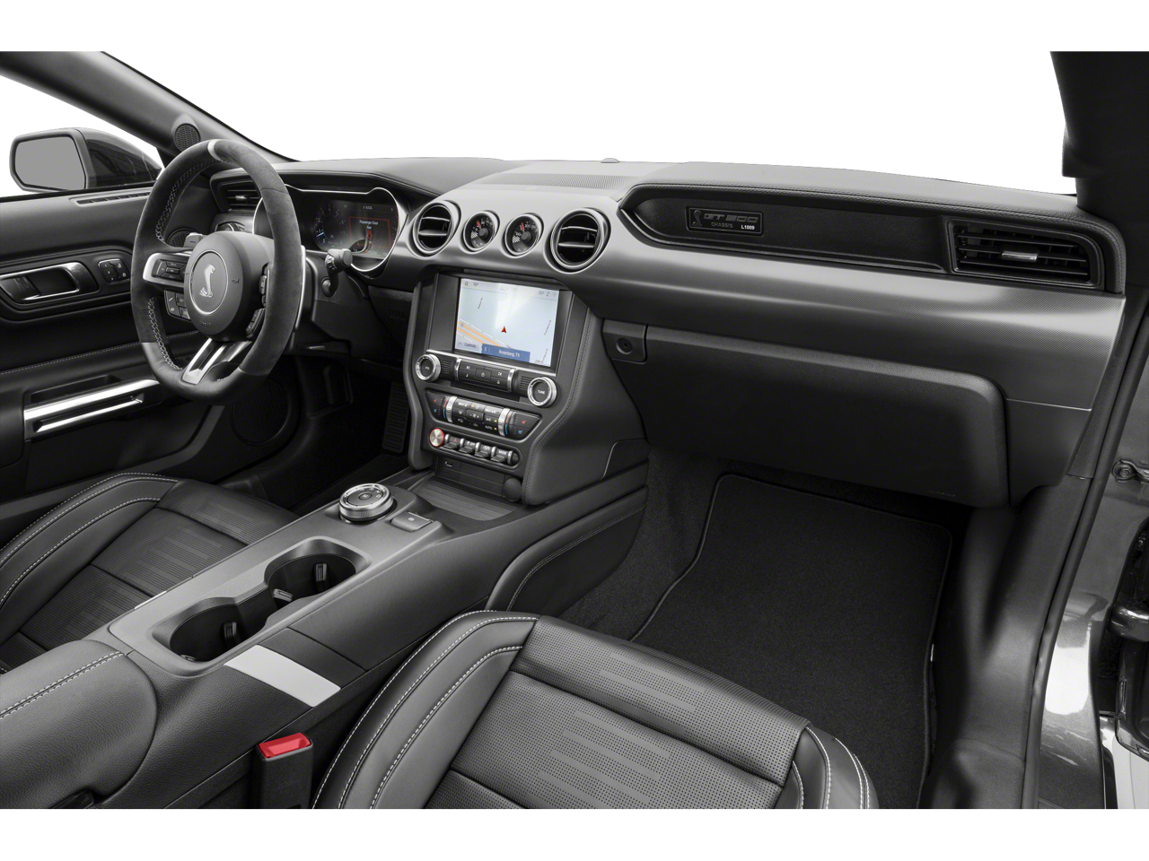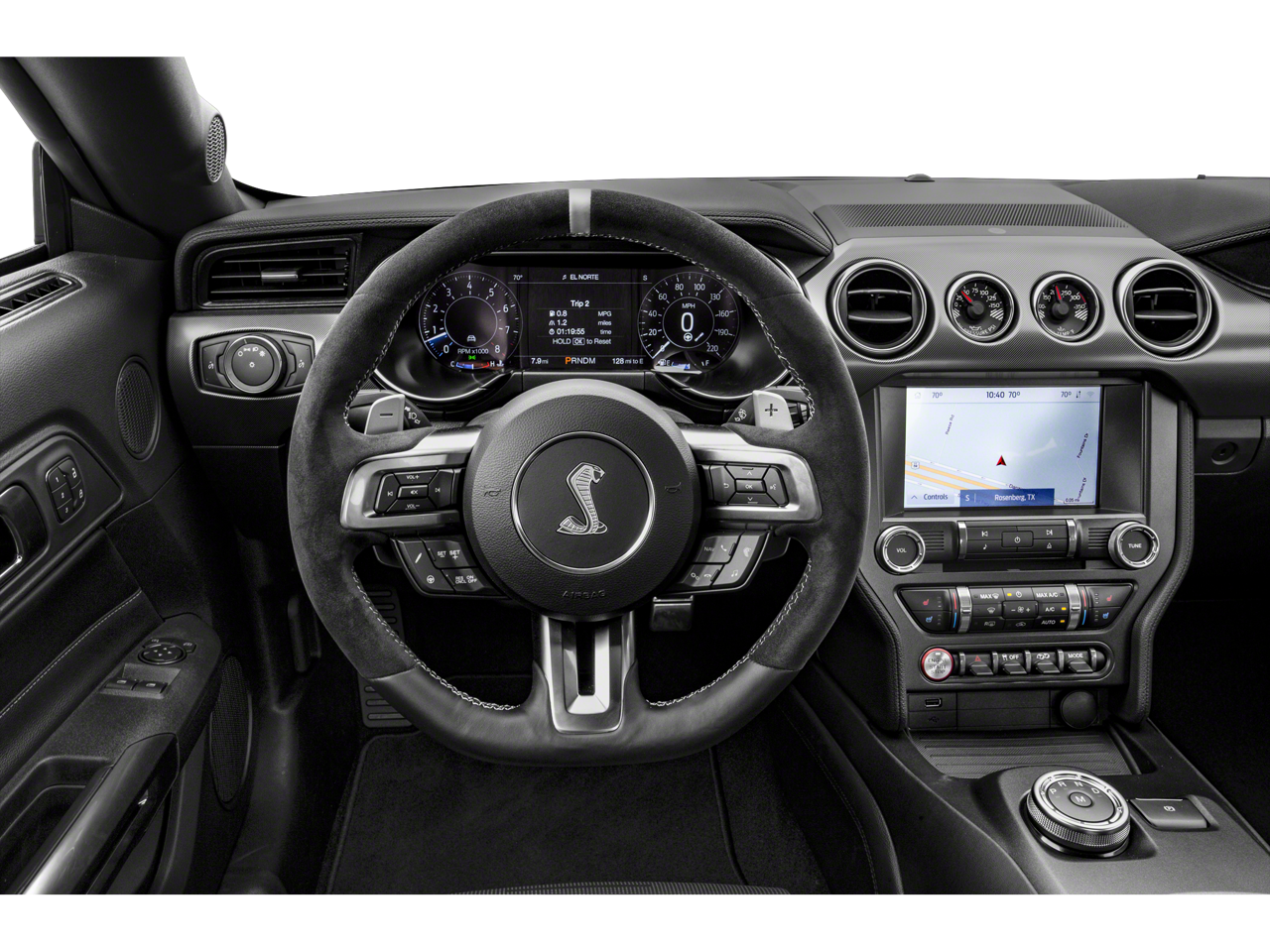 Inside, the Shelby GT500 pampers you with a host of premium features, including a premium audio system, dual-zone climate control, and a state-of-the-art infotainment system with navigation. The Recaro leather-trimmed seats with Miko suede inserts provide exceptional comfort and support, ensuring you can enjoy the ride in style.