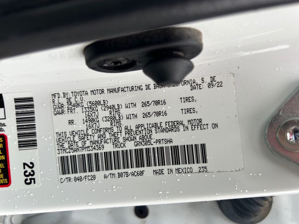 - Vehicle Name: Toyota Tacoma 4WD