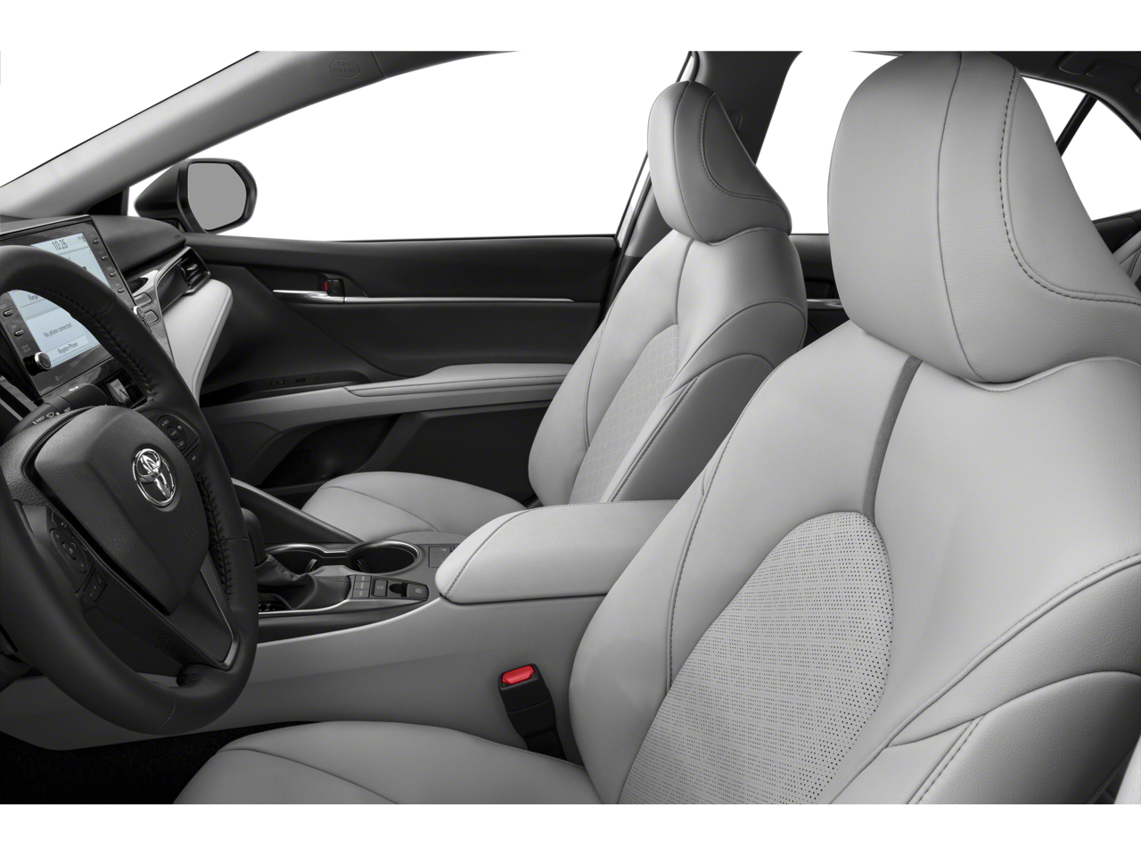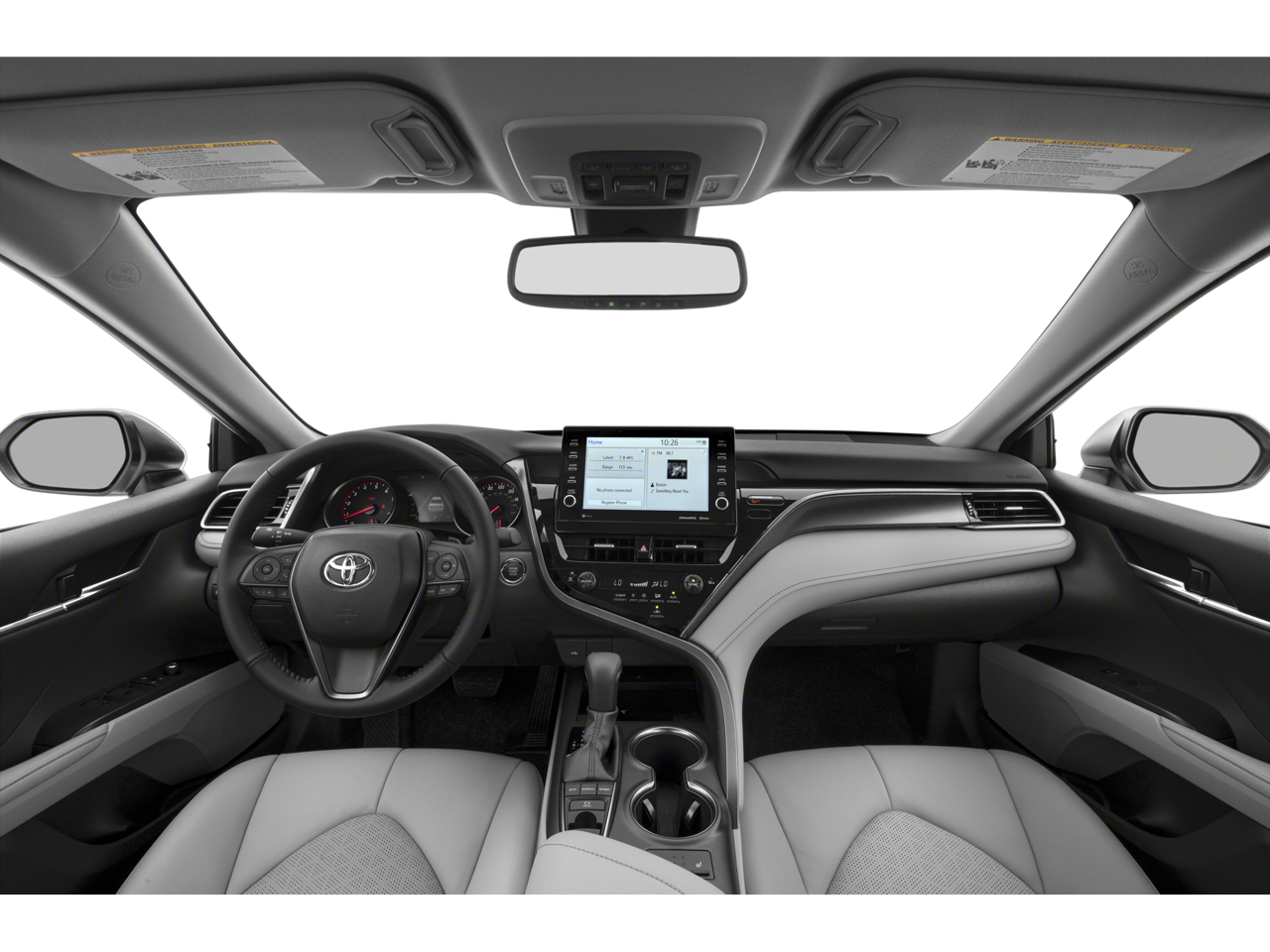 Step inside and be captivated by the Camry's premium cabin, featuring perforated leather seat trim, multi-stage heated front bucket seats, and a leather-wrapped steering wheel. The Panoramic Glass Roof floods the interior with natural light, creating a spacious and airy atmosphere. Seamlessly integrated into the dashboard, the 9-inch touch screen display showcases the Navigation Package, providing dynamic navigation, 9 JBL speakers, and a host of connected services.