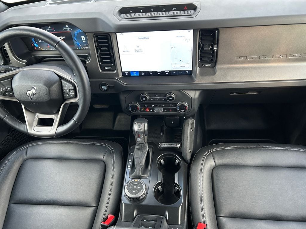 The Bronco Badlands' rugged yet refined interior is designed to withstand the elements, with Marine Grade Vinyl Heated Bucket Seats and Ambient Footwell Lighting that create a premium and comfortable driving experience. The Connected Navigation system with a 1-year subscription and live traffic updates ensures you stay connected and on the right path, no matter where your journeys take you.