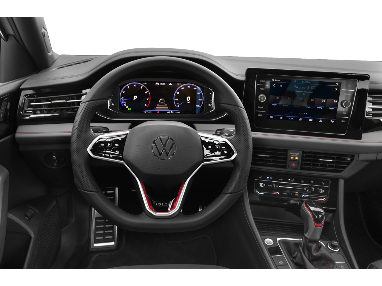 Step inside the Jetta GLI and you'll be greeted by a premium, driver-focused cabin. Perforated Vienna leather seating surfaces, heated and actively ventilated front seats, and a heated steering wheel provide exceptional comfort and luxury. The MIB3 composition media system with an 8 touchscreen and 9-speaker audio setup keeps you connected and entertained, while the auto-dimming rearview mirror with HomeLink Connect adds a touch of convenience.